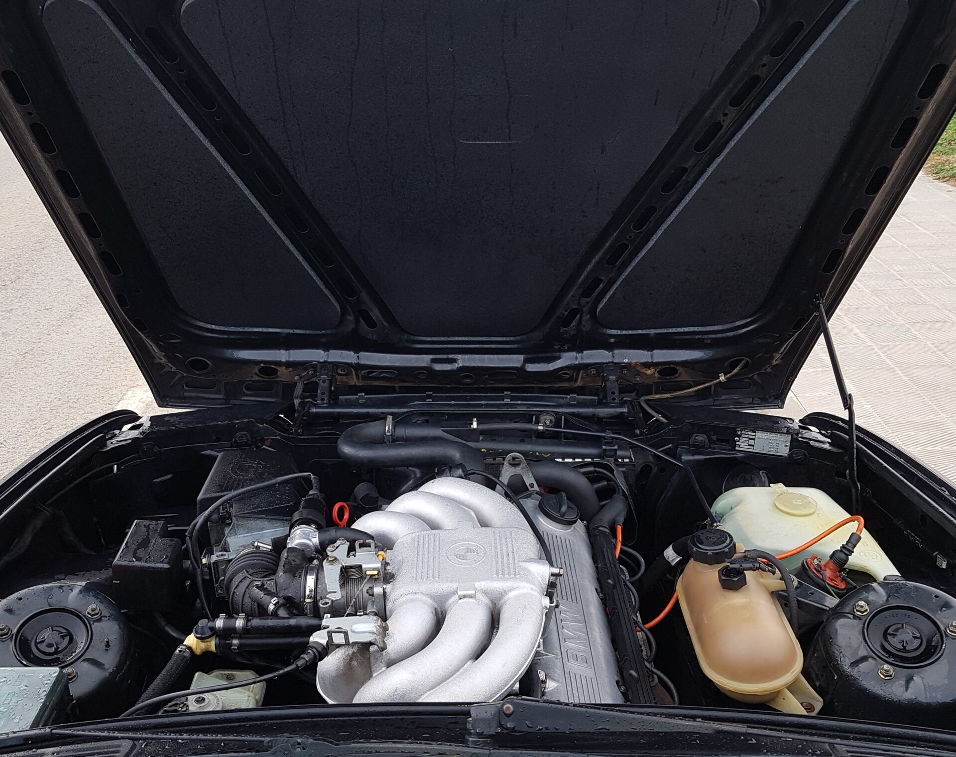El 325i montaba el mítico motor M20B25, un 2.5 litros de seis cilindros en línea con 171 CV. No era un coche de cifras, era un coche de sensaciones: sonido metálico clásico, empuje lineal, dirección comunicativa y un chasis que transmitía todo lo que pasaba bajo ti.