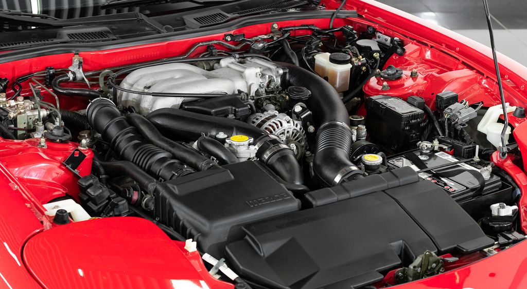 El corazón del RX-7 FD es el legendario 13B-REW, un motor rotativo de dos rotores con 1.3 litros de cilindrada real, aunque por su naturaleza equivaldría a un motor de 2.6 litros en pistones. Este bloque montaba un innovador sistema de turbos secuenciales: